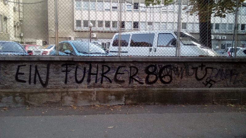 Тоа е парола на нацистите кои го слават Хитлер и Третиот рајх, а покрај овој натпис на ѕидот се напишани свастика и усташки симболи.
