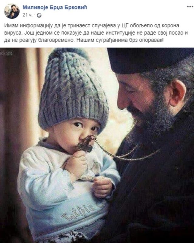 „Имам информации дека тринаесет случаи во Црна Гора се заразени со вирус. Уште еднаш се покажува дека нашите институции не ја вршат својата работа и дека не реагираат навремено. Нашите сограѓани да имаат брзо закрепнување!”