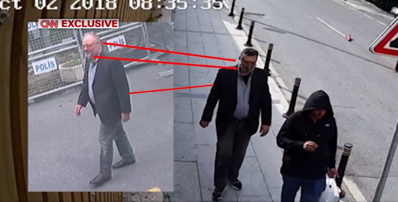Еден од 15-те осомничени агенти за убиството на саудискиот новинар Џемал Кашоги шетал низ Истанбул со неговата облека, пишува Си-ен-ен. Сервисот објави и видеоснимка на која е прикажан мажот осомничен за убиството на новинарот како шета во кошула, палто и панталони на улиците во Истанбул, исто како оние што ги носеше новинарот на 2 октомври кога влезе во саудискиот конзулат во Истанбул, а подоцна и беше убиен.