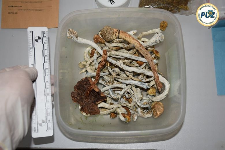 За време на претресот била пронајдена голема количина на марихуана и сушени печурки кои содржеле психоактивни супстанци, пренесоа хрватските медиуми.