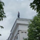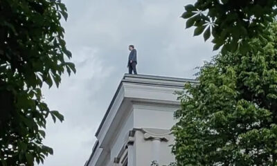 Словенечкиот опозициски пратеник Андреј Хојвик денес се качи на покривот на Народното собрание во Љубљана, обраќајќи им се на минувачите и заканувајќи се дека ќе скокне....