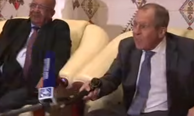 Рускиот министер за надворешни работи, Сергеј Лавров, за време на изјавата за медиумите по состанокот со министерот за надворешни работи на Алжир, Абделкадер Месаел, се ракуваше...