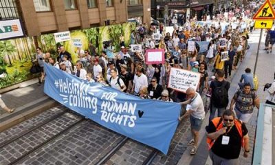 Близу 1.500 луѓе денеска протестираат во Хелсинки пред утрешниот самит во финската престолнина што ќе се одржи меѓу претседателите на САД и на Русија, Доналд Трамо...
