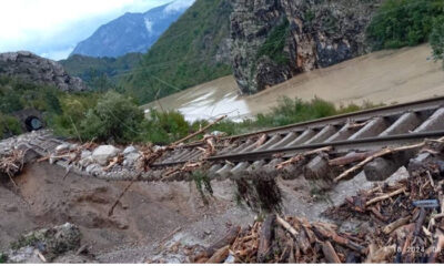 Во близина на изворот Комадино, недалеку од Јабланица во Босна и Херцеговина, патот е целосно исчезнат поради пороите и одроните што го зафатија теренот. На фотографијата...