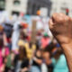 Илјадници активисти протестираат пред Обединетиот центар во Чикаго, каде што се одржува демократската национална конвенција за да привлечат внимание на прашања ,како што се правата на...