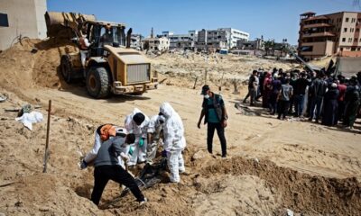 Палестинските тимови за цивилна заштита започнаа со ексхумација на тела од масовна гробница пред болничкиот комплекс Насер во Кан Јунис минатата недела, откако израелските трупи се...