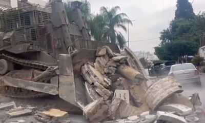 Израелските војници со булдожер го уништија споменикот на покојниот претседател на Палестинската ослободителна организација (ПЛО), Јасер Арафат на влезот во бегалскиот камп Тулкарем на Западниот Брег....