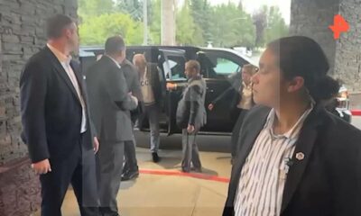 Рускиот претседател Владимир Путин е снимен како патува во оклопна лимузина, со огромен конвој што поминува низ затворени патишта, пред неговиот долгоочекуван самит со Доналд Трамп...