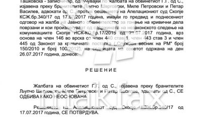 Првиот човек на Врховниот суд, Јово Вангеловски, како претседател на Кривичниот совет, и судиите Васил Грчев, Киро Здравев, Џемали Саити и Фаик Арслани, во образложението на...