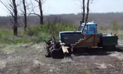 Украински фармер смислил нов начин за деминирање на својата нива по руската инвазија – опремил трактор со лизгачки плочи земени од руски тенкови и управувал со...