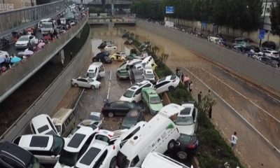 Снимките направени од дрон го прикажуваат целиот хорор предизвикан од поплавите во кинеската провинција Хенан. На снимката се гледаат автомобили што ги носи вода, како и...