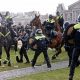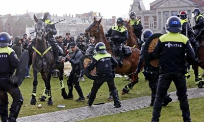 Неколку илјади луѓе денеска излегоа на протест во Амстердам поради националната блокада воведена за забавување на ширењето на пандемијата на коронавирусот, пред полицијата да ги растера....