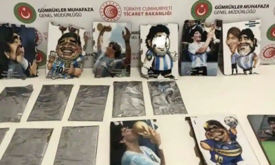 Турската полиција вчера запленила 2,5 килограма кокаин на аеродромот во Истанбул во слики на кои бил претставен портретот на легендарниот аргентински фудбалер Диего Марадона. Во соопштението...