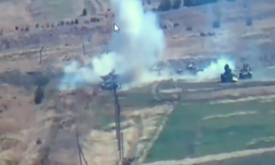 На социјалните мрежи се појави снимка на која се гледа како единиците на армијата за одбрана на Карабах вршат серија артилериски напади врз колона непријателски тенкови...
