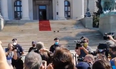 Србија денеска го доби новиот состав на Народното собрание. Пред зградата на Собранието дојде до немири и инцидент кога пратениците излегоа надвор поради пауза. Насобрани демонстранти...