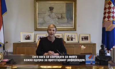Хрватската претседателка, Колинда Грабар-Китаровиќ, во пресрет на референдумот закажан за 30. септември преку видео-обраќање упати порака до македонските граѓани, при што вели дека одлуката може да...