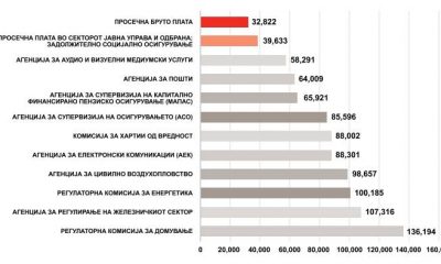 Од 18.174 денари просечна месечна нето-плата кај административните државни службеници во Секретаријатот за спроведување на Рамковниот договор до 90.215 денари просечна месечна нето-плата во Регулаторната комисија...