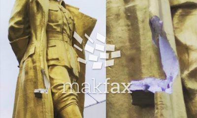Оштетен е споменикот на Јосип Броз Тито, кој се наоѓа пред гимназијата „Јосип Броз Тито“, во строгиот центар на Скопје. Како што може да се види...
