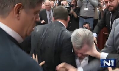 Во српскиот парламент дошло до физичка пресметка кога опозиционерите првин кренале транспаренти по усвојувањето на дневниот ред, а потоа се обиделе физички да го спречат почетокот...