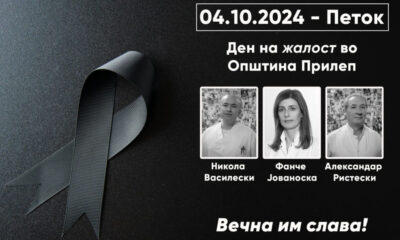 Денешниот ден, петок, 4 октомври, е ден на жалост во Прилеп поради трагичната смрт на трите медицински лица, кои вчера изутринава загинаа во тешка сообраќајна несреќа...