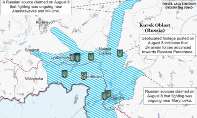 „Геолокацираните слики и руските тврдења покажуваат дека украинските сили продолжиле бргу да напредуваат понатаму во Курската област и наводно се присутни во области оддалечени дури 35...