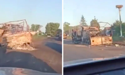 Аналитичкиот проект „Дип стејт“ сподели видео на кое се гледа уништен конвој возила на руските вооружени сили во селото Жовтневе во областа Курск. Видеото е снимено...