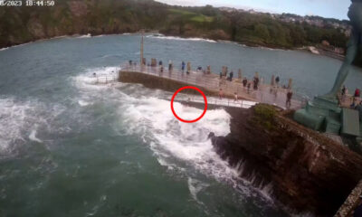 Група од четири млади луѓе доживеала шок кога голем бран одвлекол една од девојките од пристаништето во Девон, Англија, во морето. Бранот ја соборил младата девојка...