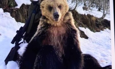 „Заменик-директорот на ‘Македонијапат’ и претседател на Унијата на ветераните во Демир Хисар, Сашо Дранго, гордо се фотографира со мечка, што ја застрелал во декември 2024 година“,...