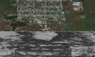 Компанијата Maxar Technologies објави сателитски фотографии од село во јужниот регион Херсон, направени пред и по уништувањето на браната и поплавите како резултат на тоа. Горната...