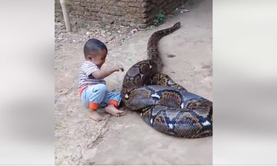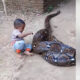 Видео со дете што си игра со џиновска змија го остави интернетот во шок