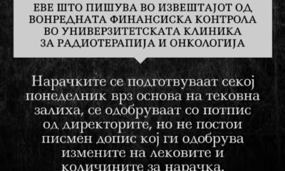 „Министерот на здравство и директорот на Онкологија ја штителе омилената веледрогерија на власта иако доцнела со испораки, канцер-мафијата го нагризала системот. Министерот за здравство и директорот...