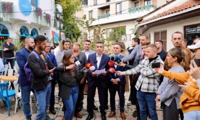 Претседателите на Алтернативата, Беса и Демократското движење, Африм Гаши, Билал Касами и Изет Меџити, по одржаната кафе-средба во Старата скопска чаршија, со порака за изборниот процес....