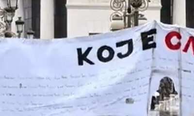 Иницијативата „Кој е следен“ со герила акција побара правда за жртвите од катастрофалниот пожар кој се случи на 16 март во Кочани. Пред зградата на Обвинителството...