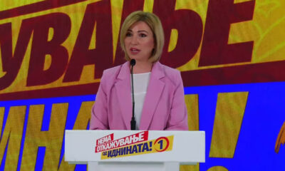 Портпаролката на СДСМ, Богданка Кузеска одржува прес-конференција во седиштето на партијата.