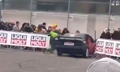 Каскадер во Италија седна на покривот на автомобил и го управуваше воланот со нозете пред да удри во публиката. Човекот, кој го управувал воланот со нозете...