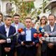 Претседателите на Алтернативата, Беса и Демократското движење, Африм Гаши, Билал Касами и Изет Меџити, по одржаната кафе-средба во Старата скопска чаршија, со порака за изборниот процес....