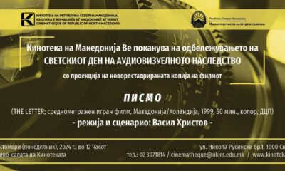 На 28 октомври (понеделник), во 12 часот, Кинотеката на Македонија ќе го одбележи 27 Октомври – Светскиот ден на аудиовизуелното наследство со презентација на проектот за...