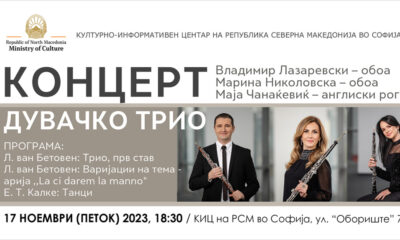На 17 ноември 2023, со почеток од 18.30 часот, во галеријата на КИЦ на Република Северна Македонија во Софија, ќе се одржи концертот на дувачкото трио,...