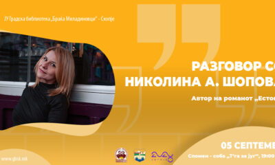 Утре, 5 септември, во 19 часот во Градската библиотека „Браќа Миладиновци“ во Скопје, ќе се одржи разговор со писателката Николина Андов-Шопова, авторка на романот „Естом“ –...
