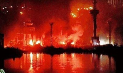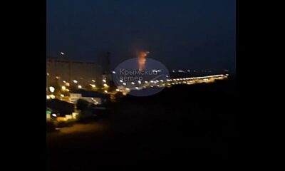 На Крим се случи голема експлозија. На видеото што се шири на социјалните мрежи се гледа голем пламен во ноќта. ⚡️A powerful explosion occurred in the...