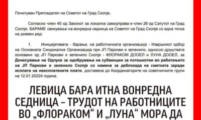 „Работниците во друштвата основани од ЈП Паркови и зеленило Скопје – Флораком ДООЕЛ и Луна ДООЕЛ – веќе три месеци немаат земено плата. Работничките организации при...