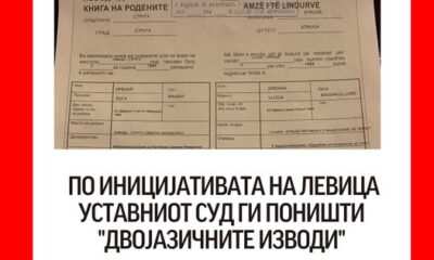 „Откако Левица, преку претставка, го оспори Упатството за водење матични книги донесено од Министерство за правда, Уставниот суд одлучи да поведе постапка по истата – со...