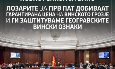Владата на Република Северна Македонија на денешната владина седница, по предлог на министерството за земјоделство, шумарство и водостопанство го прифати новиот закон за вино. „Како министерство...