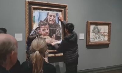 Активисти на групата Youth Demand во Националната галерија во Лондон, на познатата слика на Пабло Пикасо, Le Maternite, залепиле фотографија од фоторепортерот на агенцијата „Анадолија“, Али...