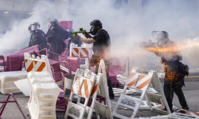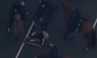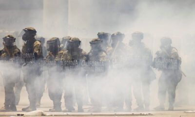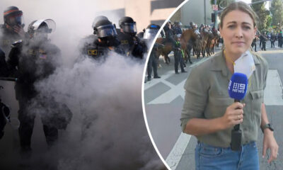 Лорен Томаси, дописничка на „Најн њуз“, известуваше од протест во Лос Анџелес кога беше погодена од гумен куршум испукан од блиската полиција. „Полицијата на Лос Анџелес...