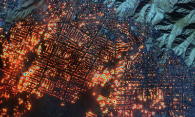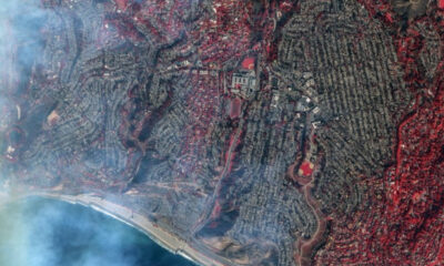 Пожарот речиси целосно уништи голем дел од Пацифик Палисадес во Лос Анџелес, покажуваат новите сателитски снимки од Maxar Technologies. Сликите се направени во лажна боја, користејќи...