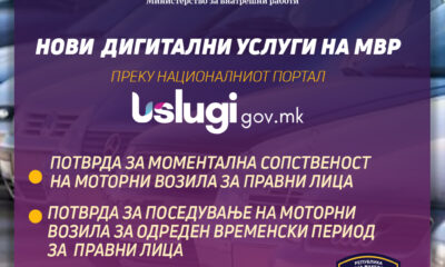 Министерството за внатрешни работи продолжува со дигитализација на своите услуги кон граѓаните. Преку порталот uslugi.gov.mk пуштени се во функција две нови дигитални услуги и тоа: Потврда за моментална...