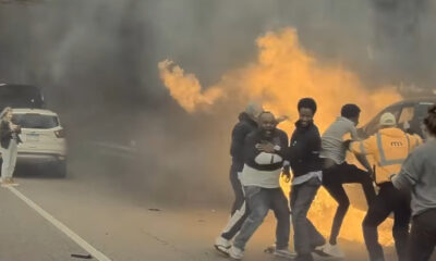 Група луѓе успеале да скршат запален автомобил и да спасат маж заробен во возилото, а драматичниот момент на спасувањето во Минесота беше снимен. На видеото се...
