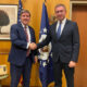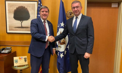 Претседателот на ВМРО-ДПМНЕ, Христијан Мицкоски заедно со потпретседателите на ВМРО-ДПМНЕ, Тимчо Муцунски и Владо Мисајловски оствари средба со Џејмс Обрајен, помошник државен секретар за Европски и...