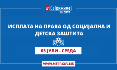Министерството за труд и социјална политика информира дека денеска започна исплатата на правата од социјална, детска и цивилна заштита за месец јуни 2023 година. Корисниците на...